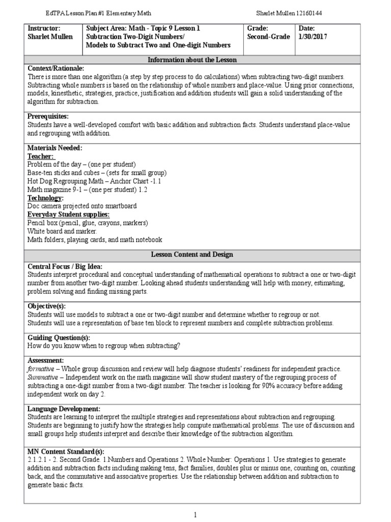 Then introduce the new number that comes after nine in number order that will be included in the lesson. Edtpa sample lesson plan. Students will work in groups to present and defend their positions in a mock trial based on a recent copyright.